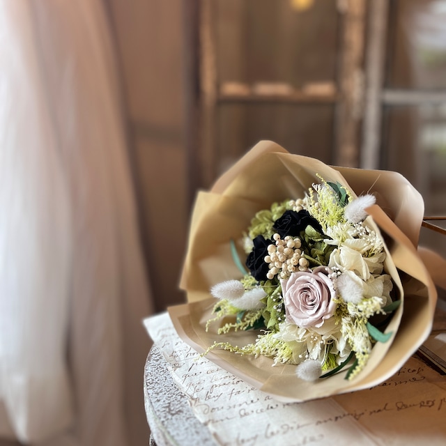 【プリザーブドフラワー】花束 bouquet|ブーケ|グレー|黒|ブラック|グリーン|バースデイ|プレゼント|フラワーギフト|お誕生日|記念日|サプライズ|プリザーブドブーケ|ミニブーケ|ラッピング無料|ペーパーバッグ|フラワーギフト