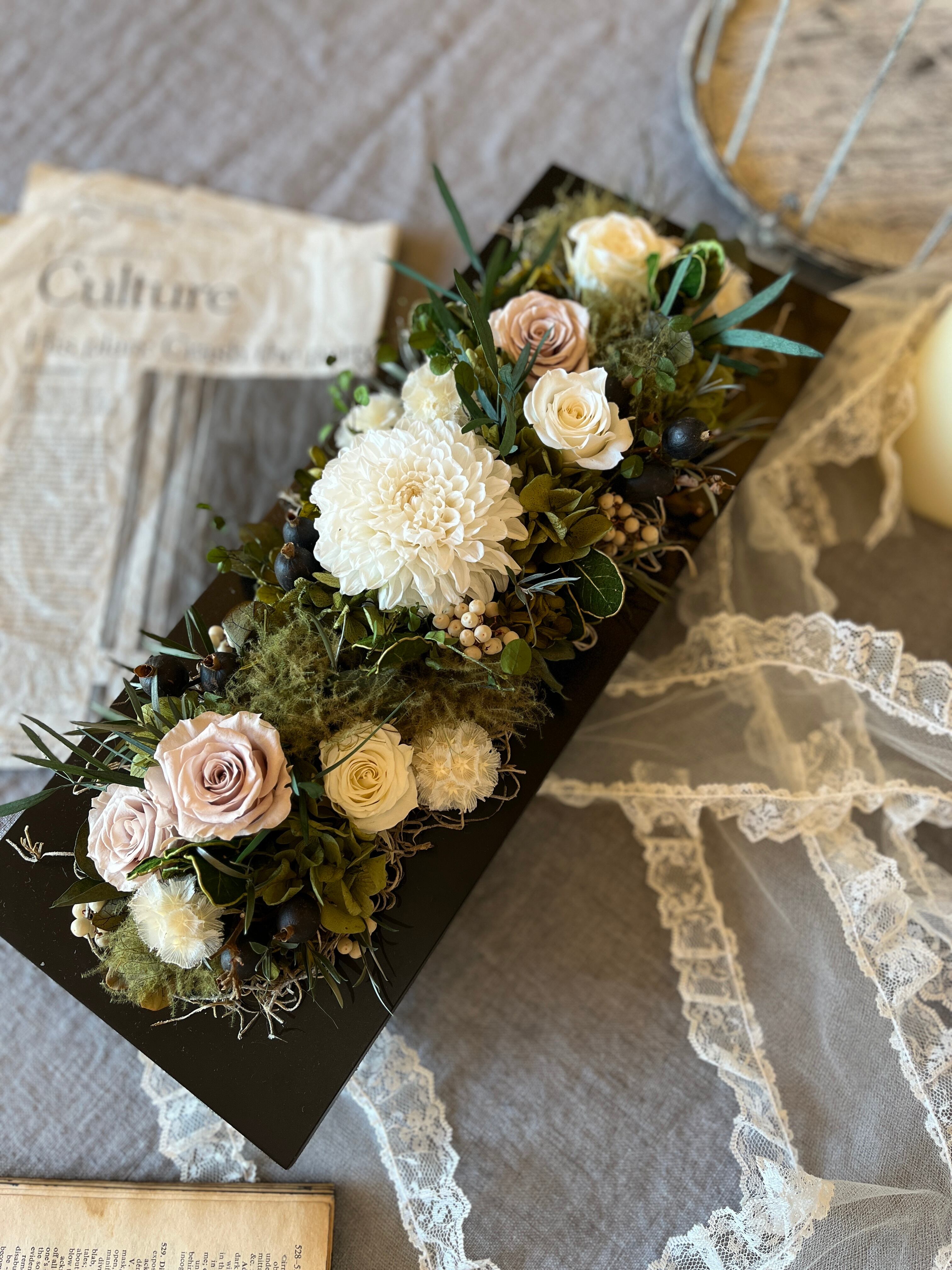 ✺木製フレームのプリザーブドフラワーのアレンジメント