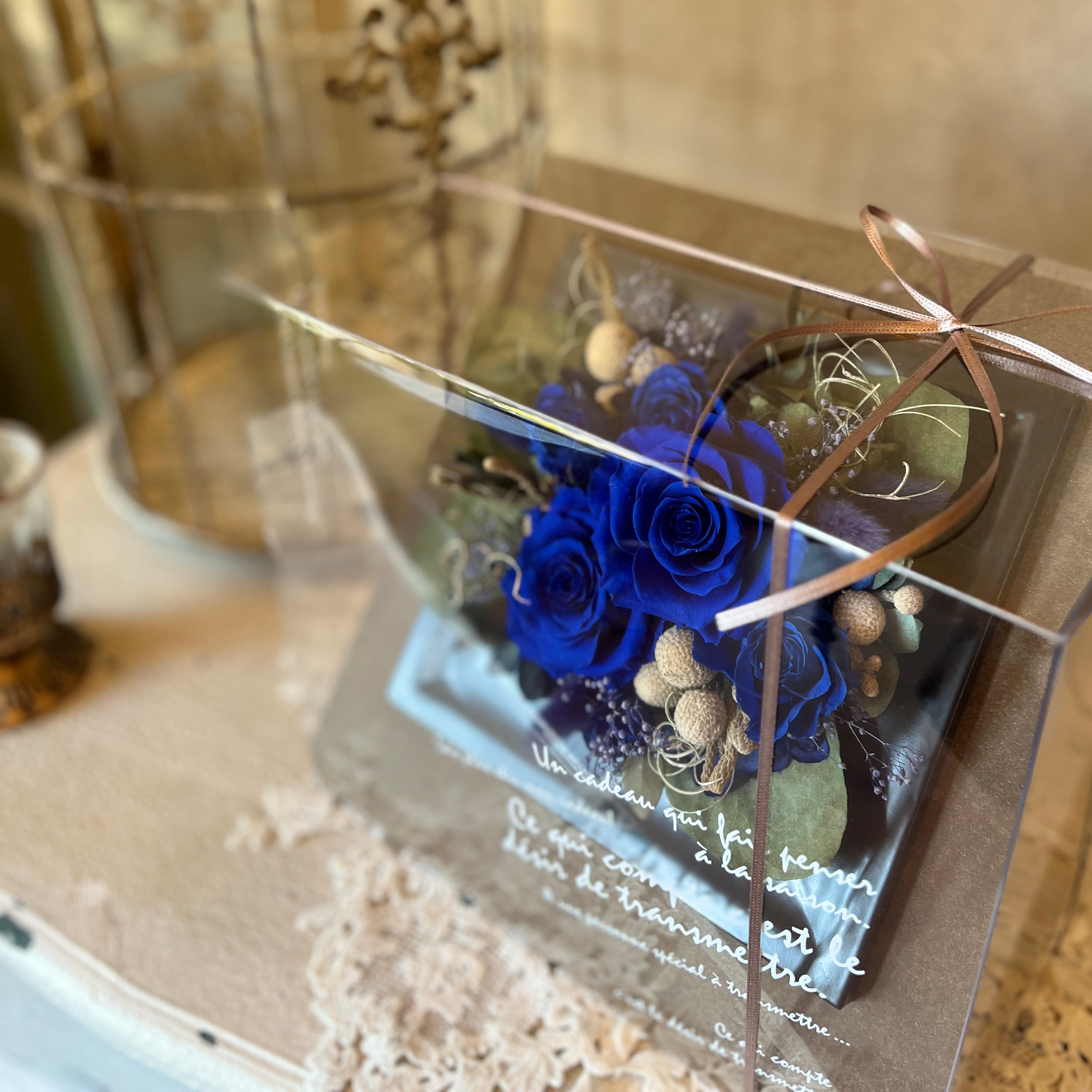【プリザーブドフラワー】ウッドフレーム クリアケース付き Square ブラウン|blue|青|プリザ|プレゼント|ケース付き|送別|退職のお祝い|男性|インテリア|贈り物|ギフト|ラッピング無料|クリアケース|壁掛け|フレーム|アレンジメント|正方形 | プリザーブドフラワー専門店 Fleur・Pieces ドライフラワー