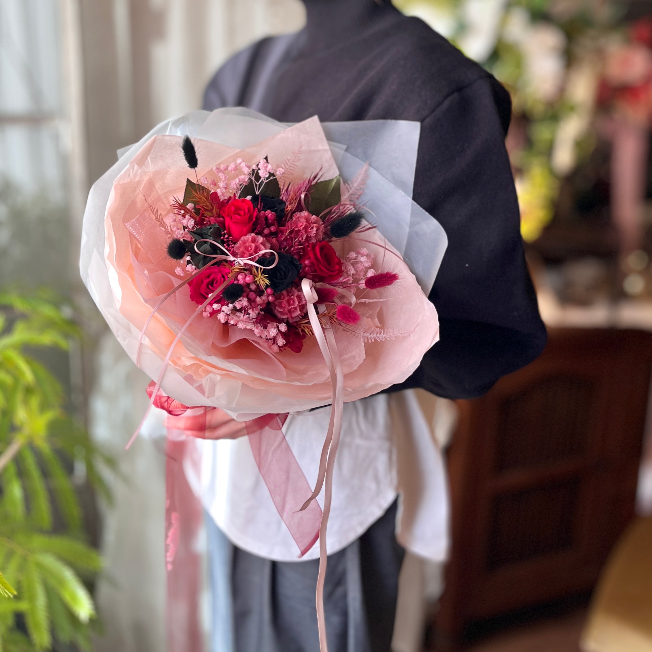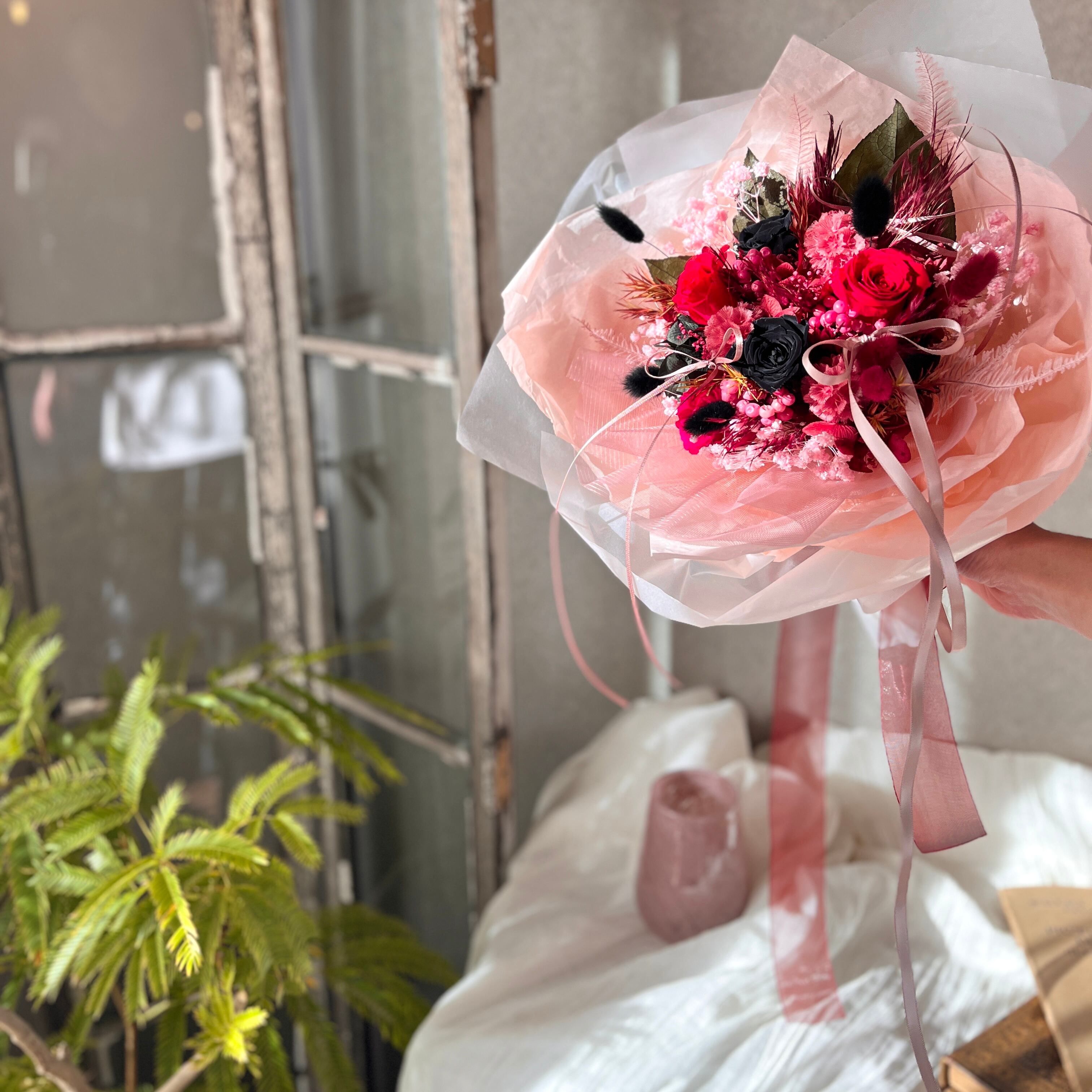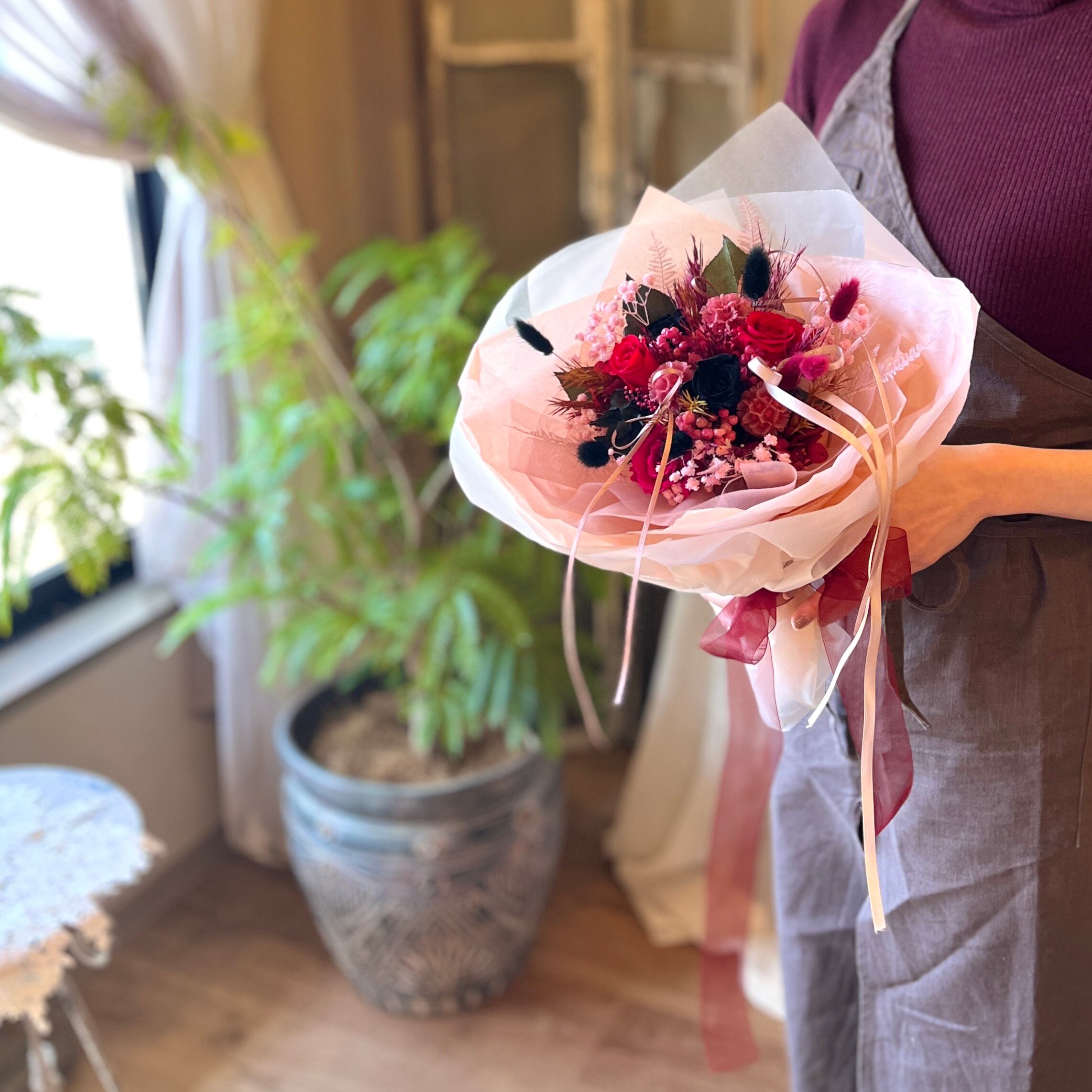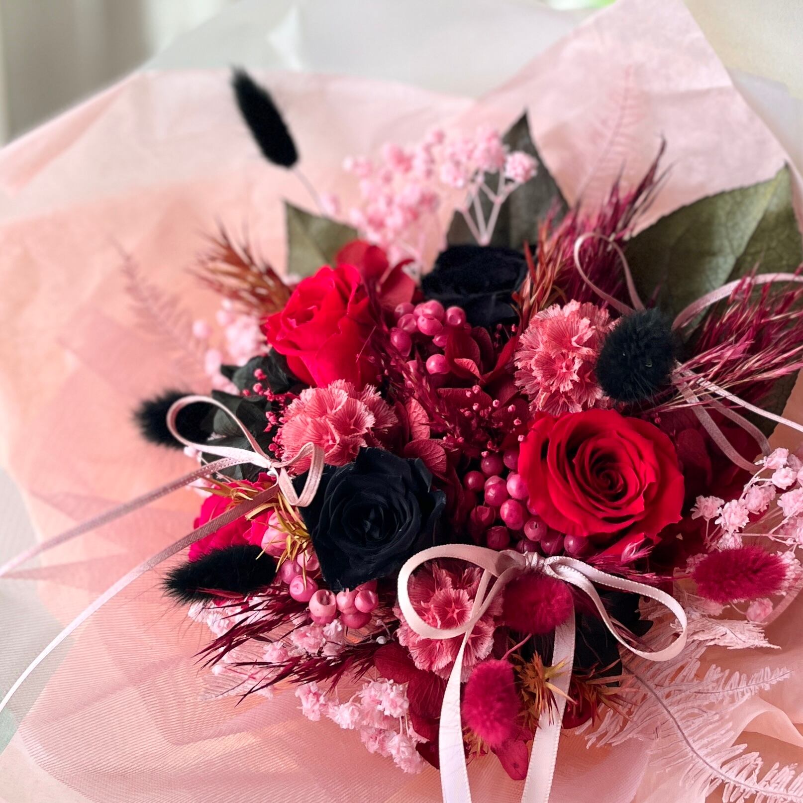 【プリザーブドフラワー】花束 bouquet|ブーケ|黒|black|rose|赤|リボン|ブラックローズ|バースデー|プレゼント|フラワーギフト|記念日|プロポーズ|お誕生日|お祝い|サプライズ|プリザーブドフラワーブーケ|ラッピング無料|フラワーギフト