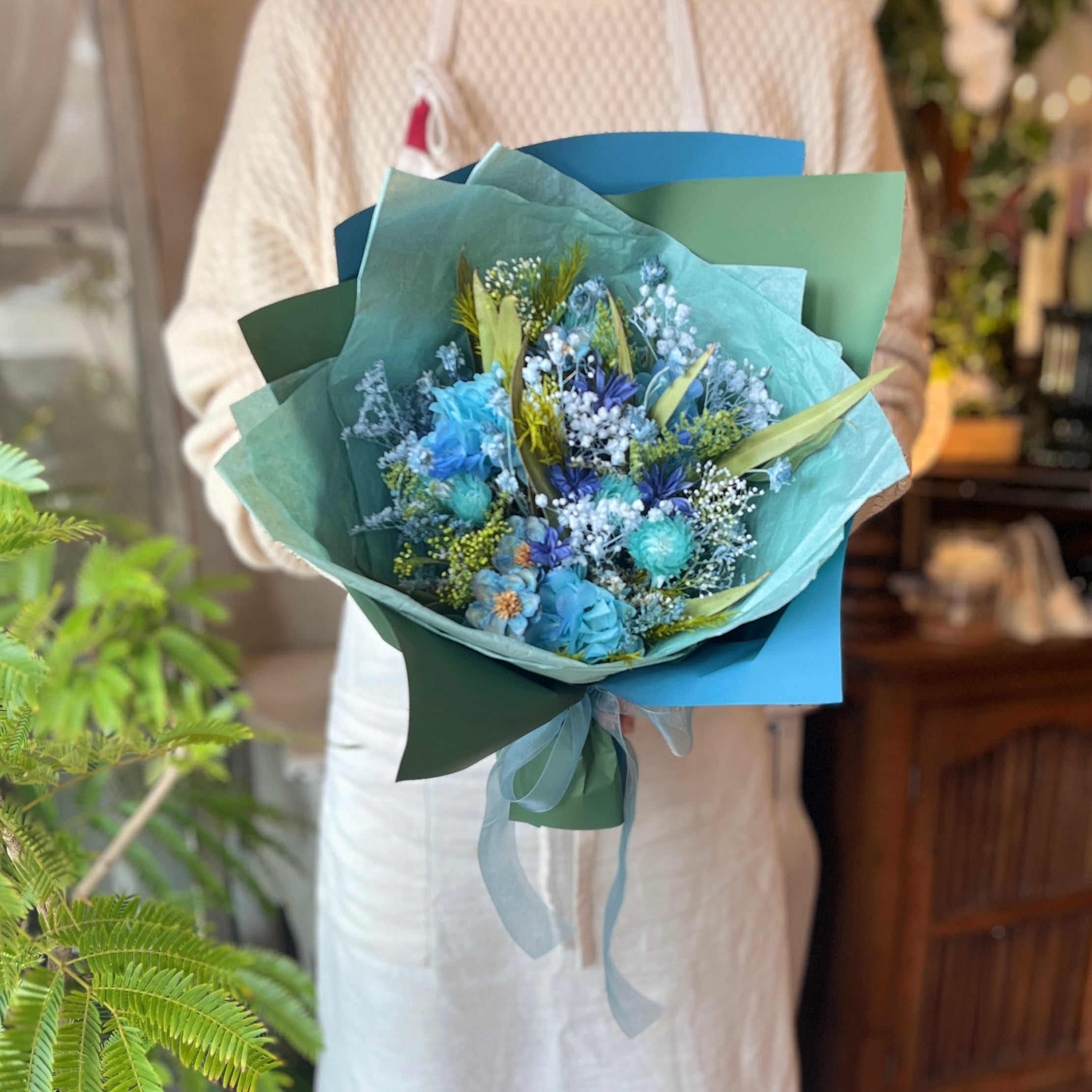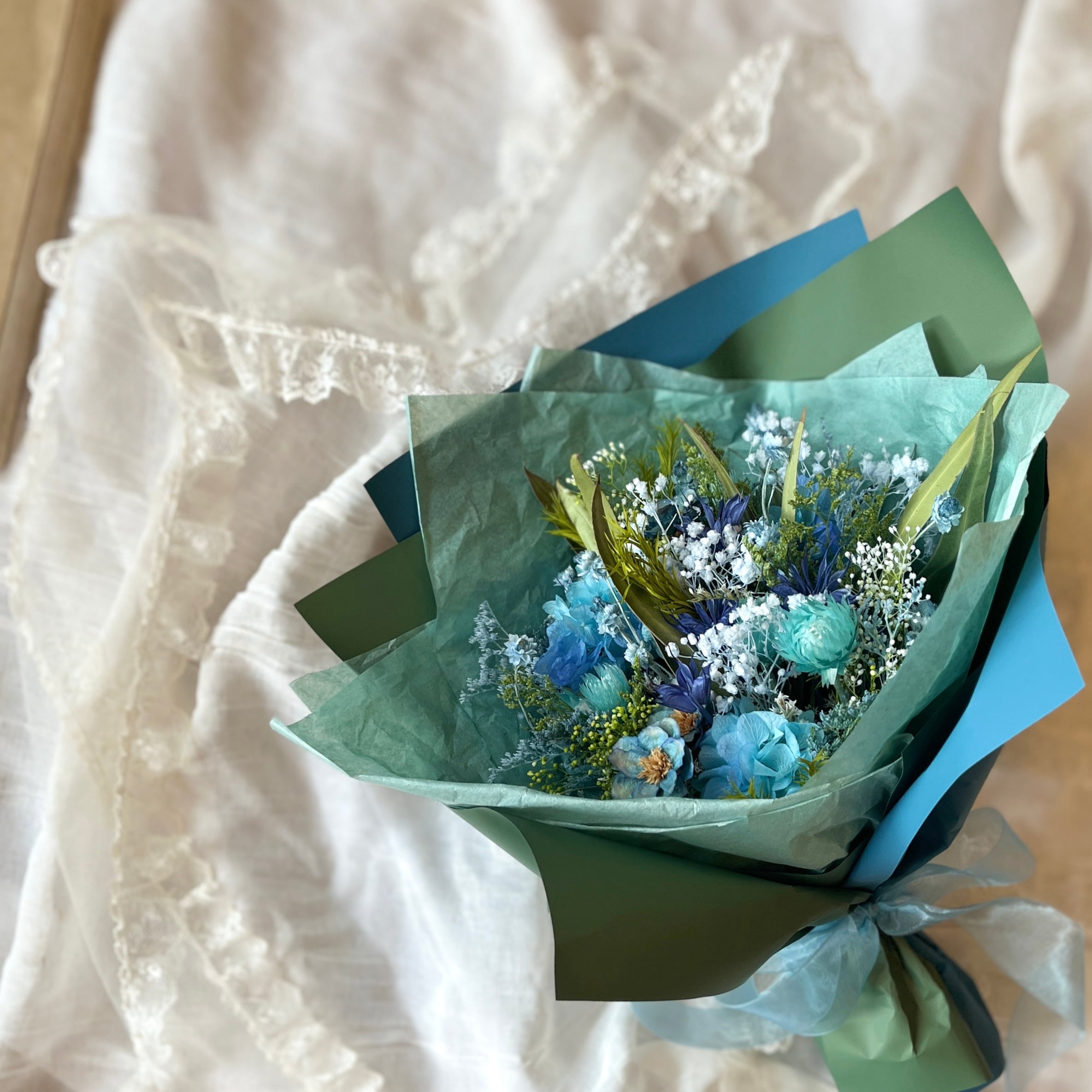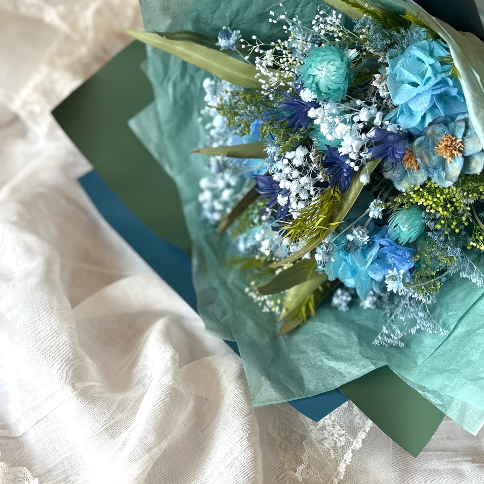 【ドライフラワー】花束 bouquet|ブーケ|ターコイズ|水色|ブルー|グリーン|プレゼント|フラワーギフト|お誕生日|卒業|記念品|お礼|お祝い|送別|ラッピング無料