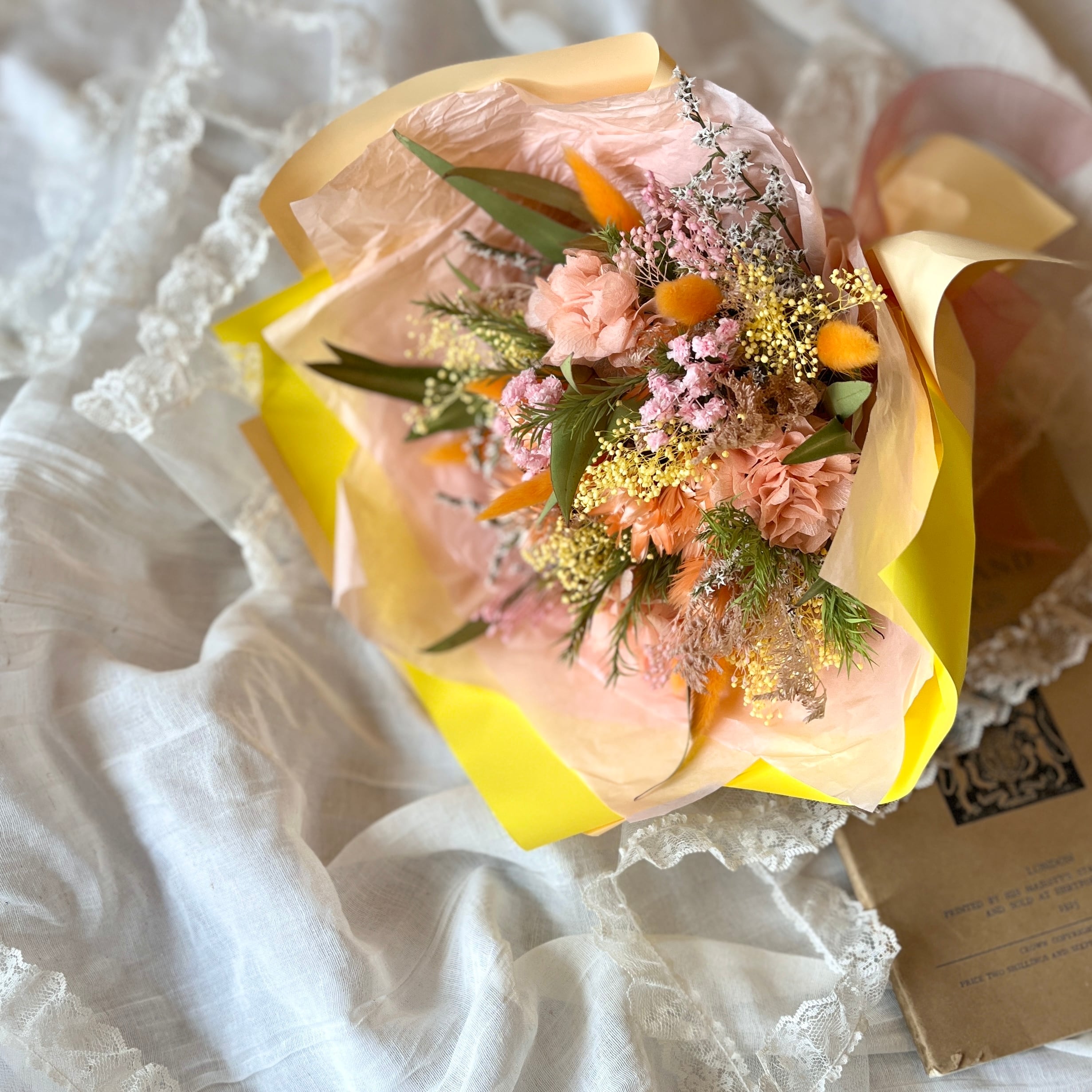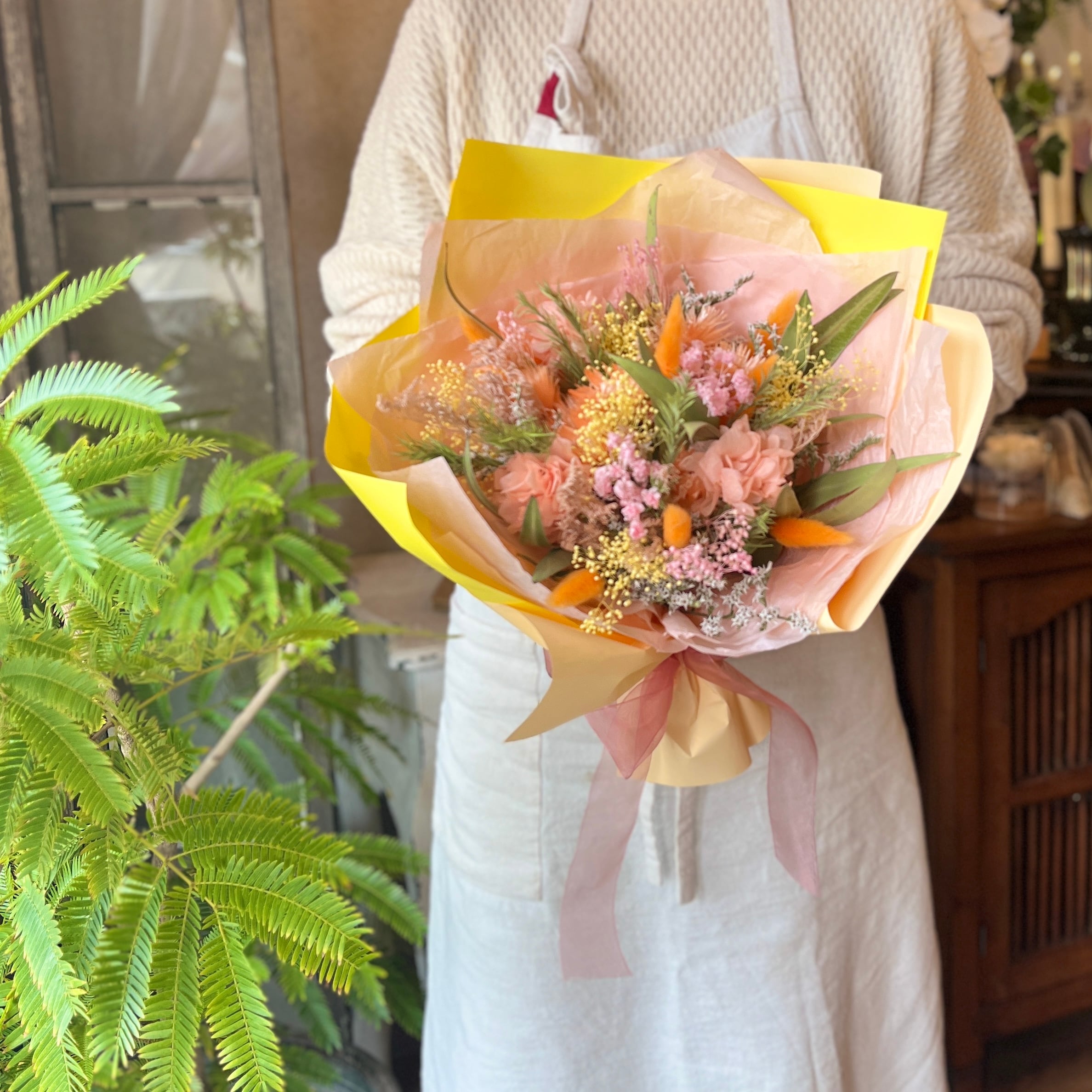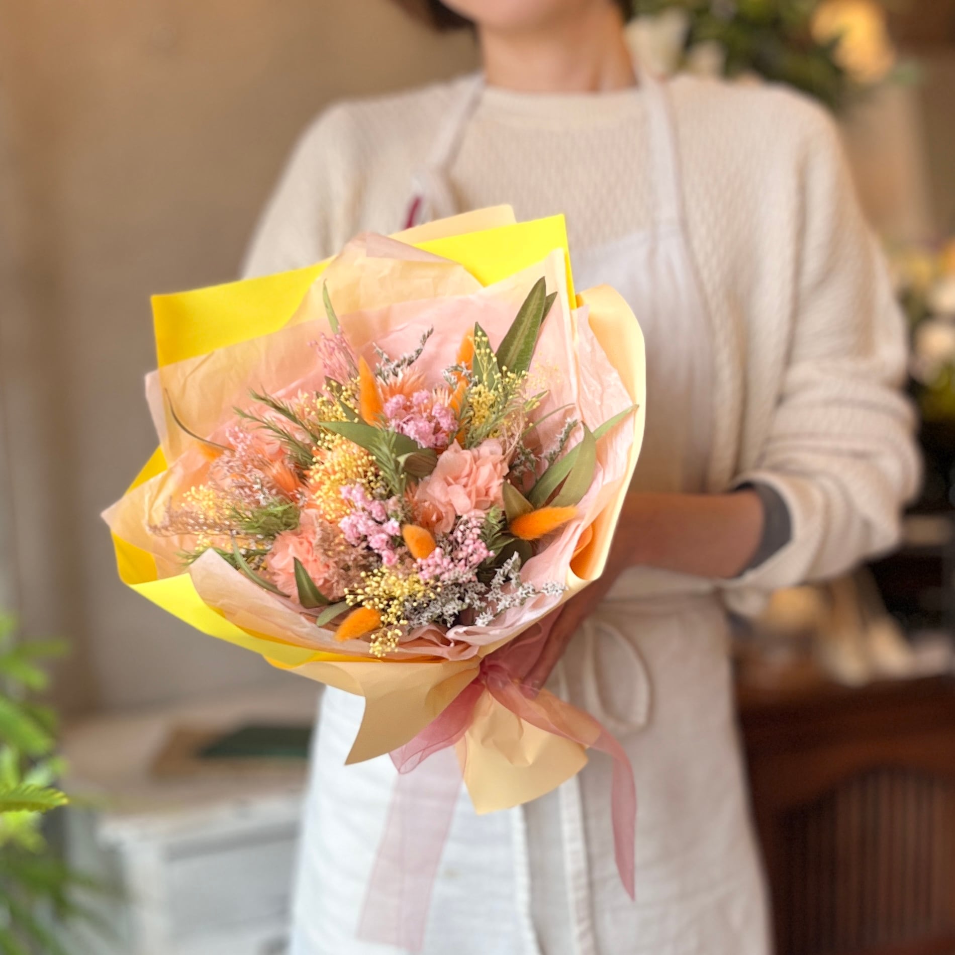 【ドライフラワー】花束 bouquet|ブーケ|パステル|オレンジ|ピンク|黄色|グリーン|プリザーブド|プレゼント|フラワーギフト|お誕生日|結婚祝い|卒業|記念品|退職|お祝い|ラッピング無料 | プリザーブドフラワー専門店 Fleur・Pieces ドライフラワー