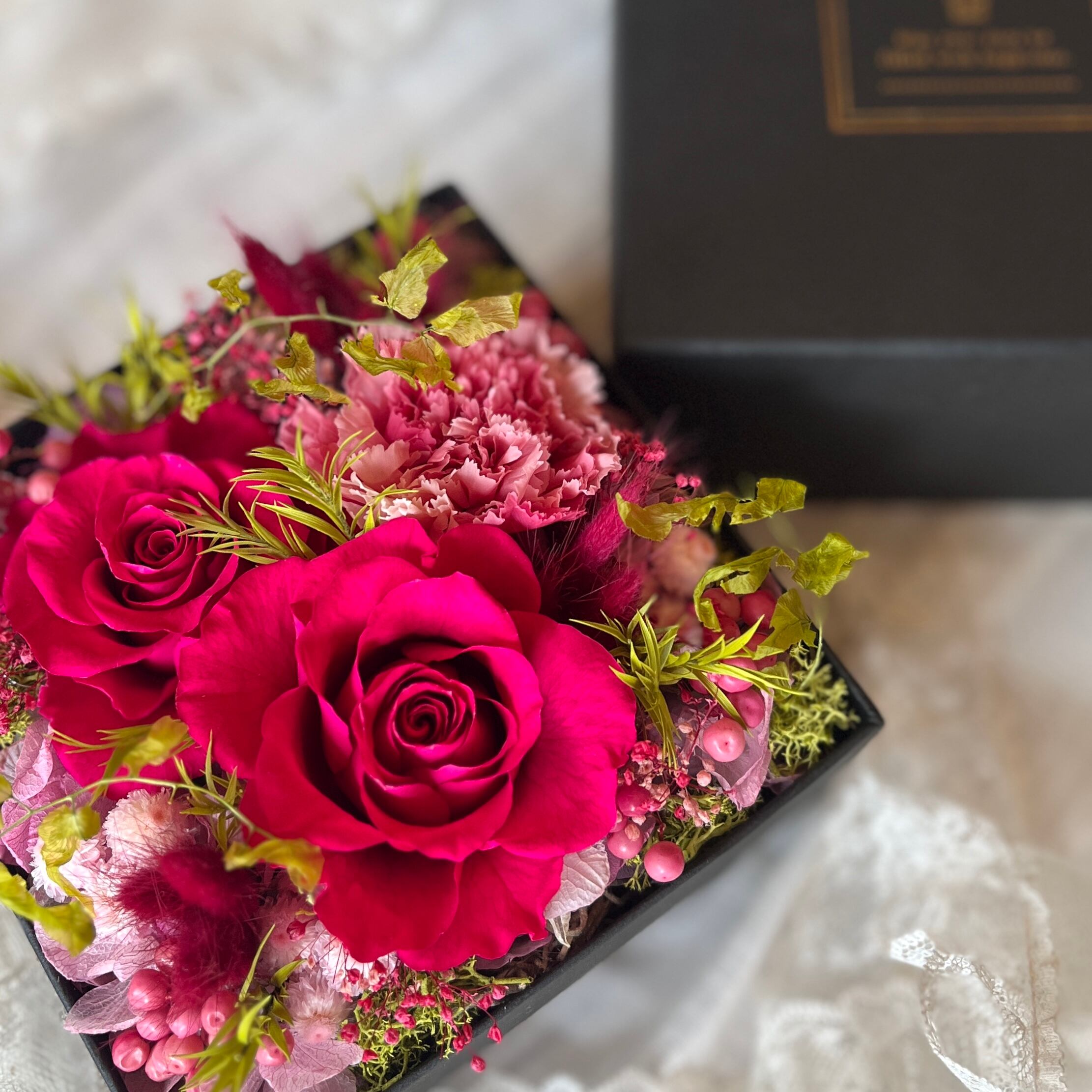 【プリザーブドフラワー】フラワーボックス|red|pink|rose|お祝い|バースデープレゼント|還暦|ホワイトデー|お返し|お礼|ギフトボックス|箱|サプライズ|ラッピング無料 | プリザーブドフラワー専門店 Fleur・Pieces ドライフラワー