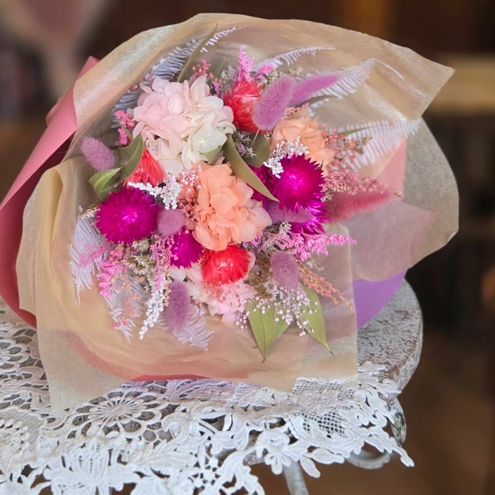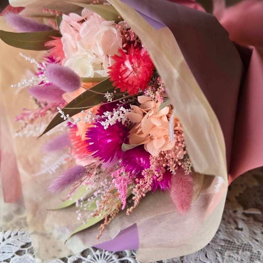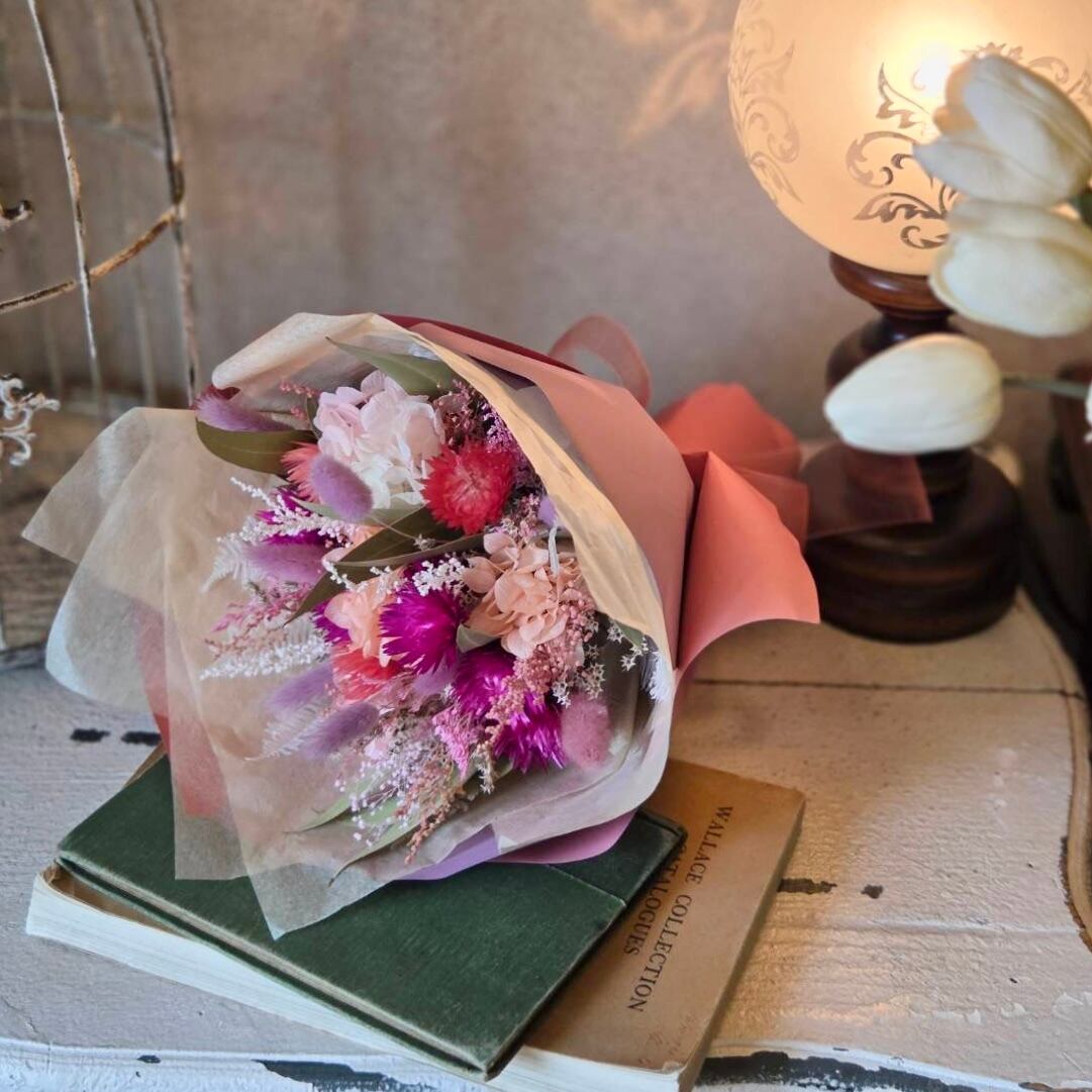 【ドライフラワー】花束 bouquet|ブーケ|カラフル|ラズベリー|ホットピンク|ラベンダー|マゼンタ|ポップ|プリザーブド|プレゼント|フラワーギフト|お誕生日|結婚祝い|卒業|記念品|退職|お祝い|ラッピング無料