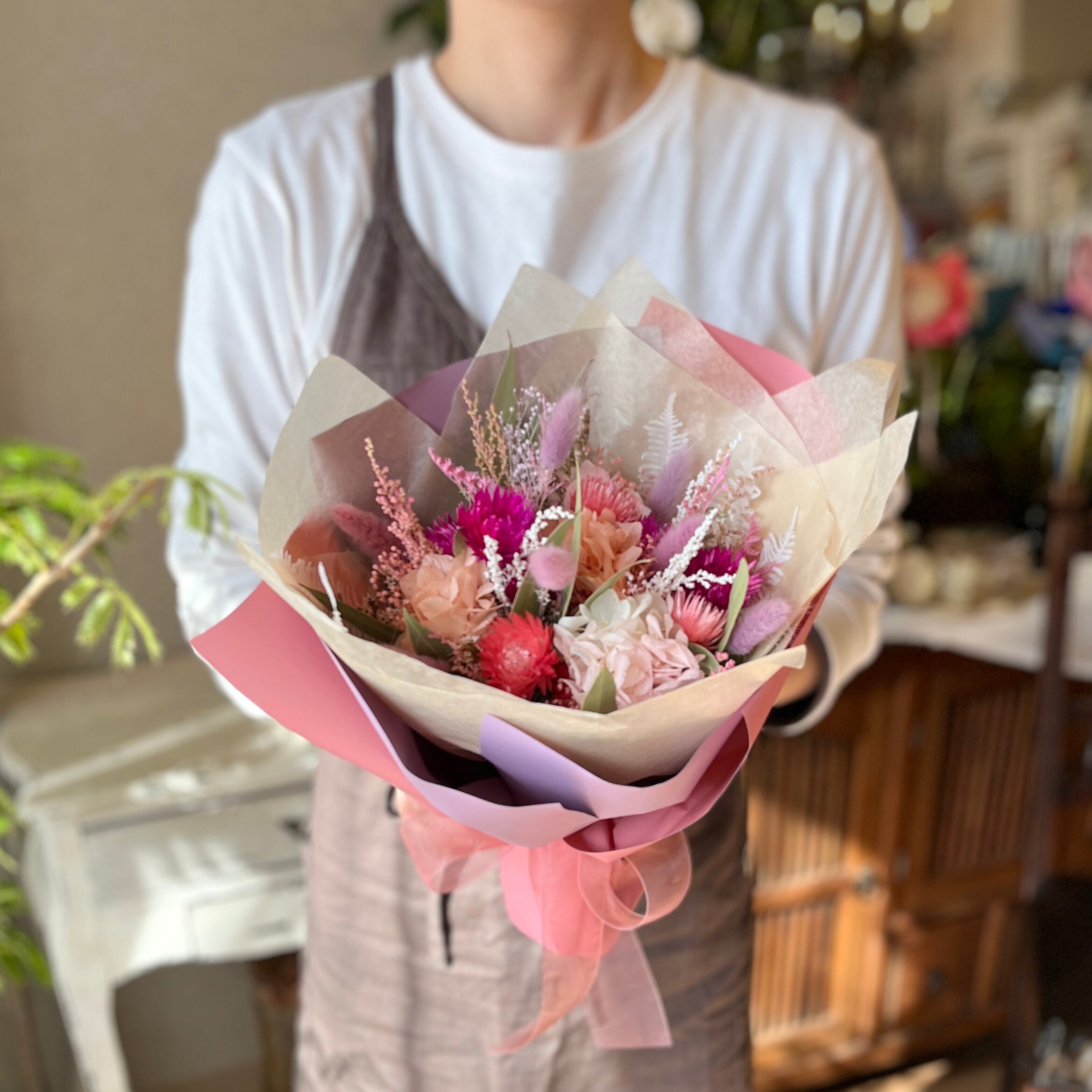 ドライをミックスしたふんわり花束