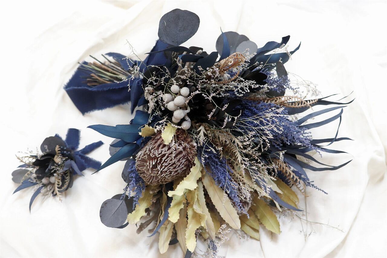 【ウェディングブーケ】ブートニアセット BlueBlack