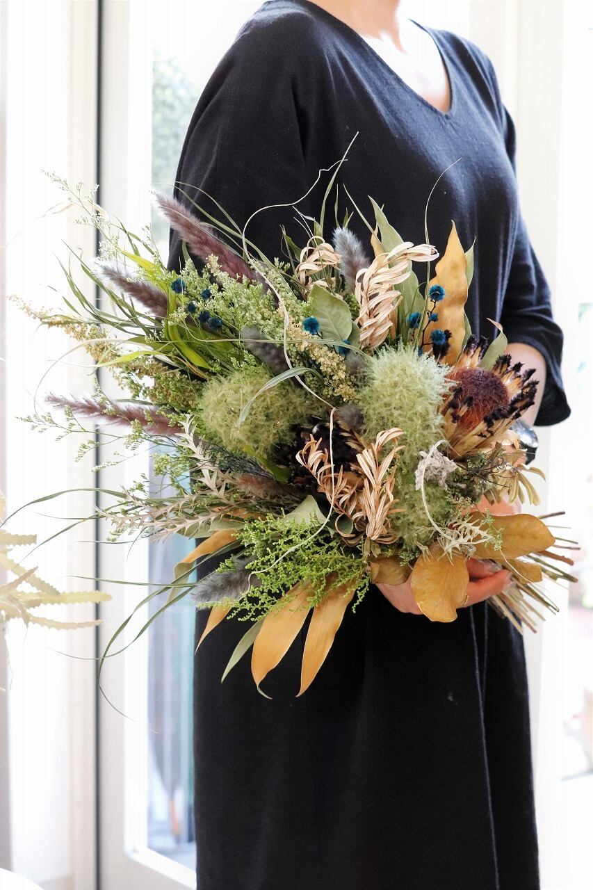 【ドライフラワー】スワッグ ブーケ 花束 Green×Blue