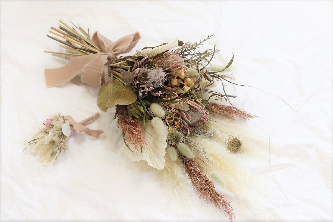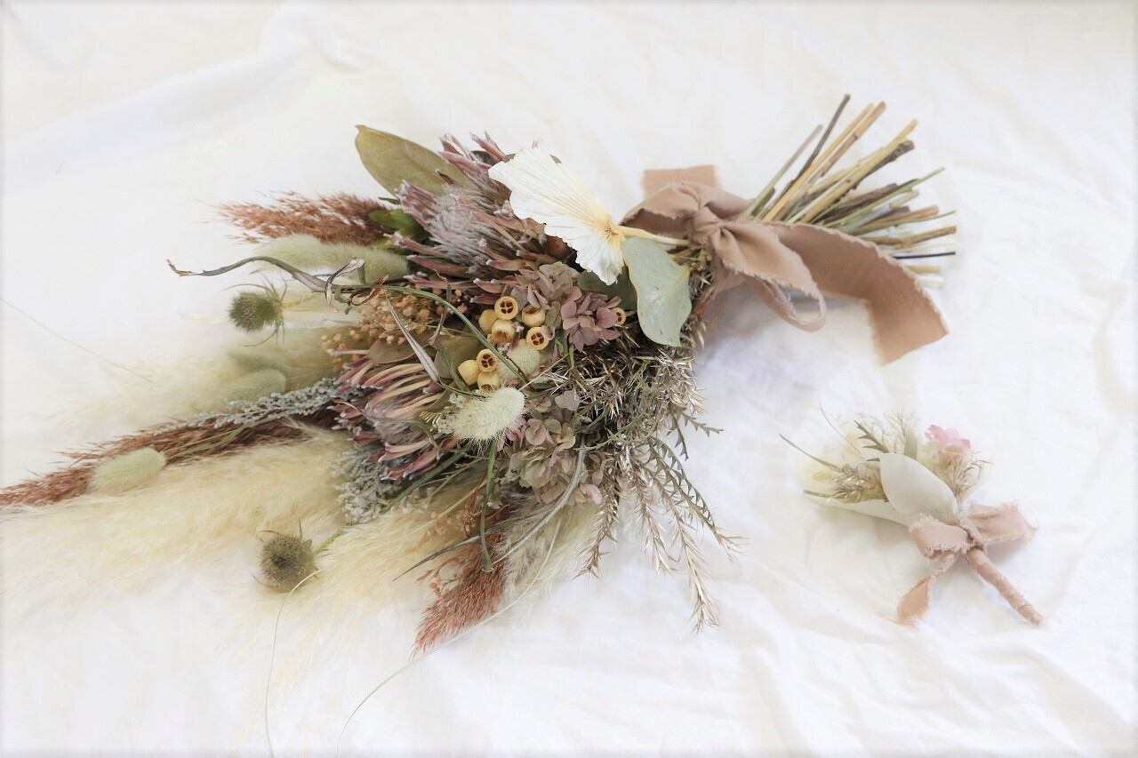 【ウェディングブーケ】ブートニアセット プロテア