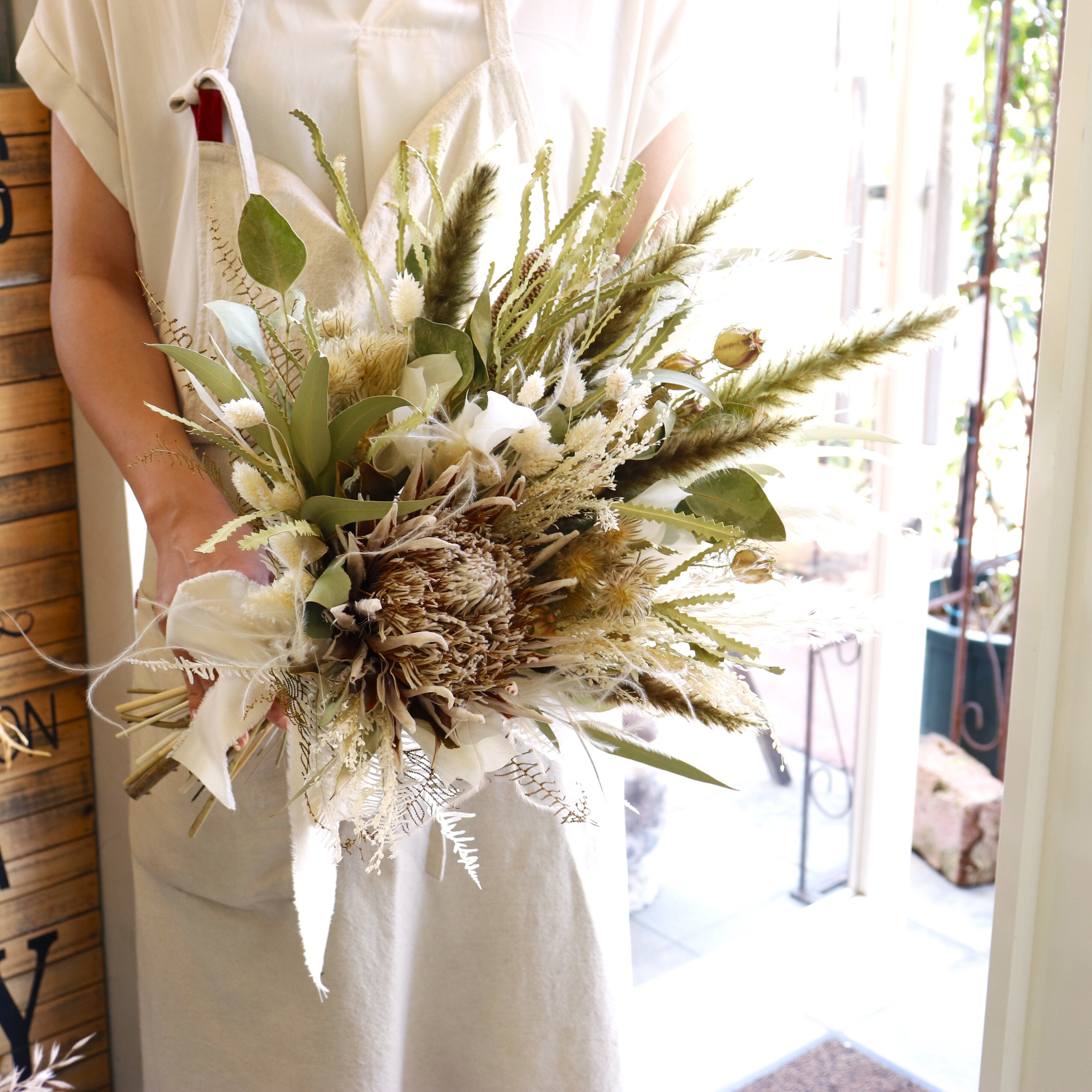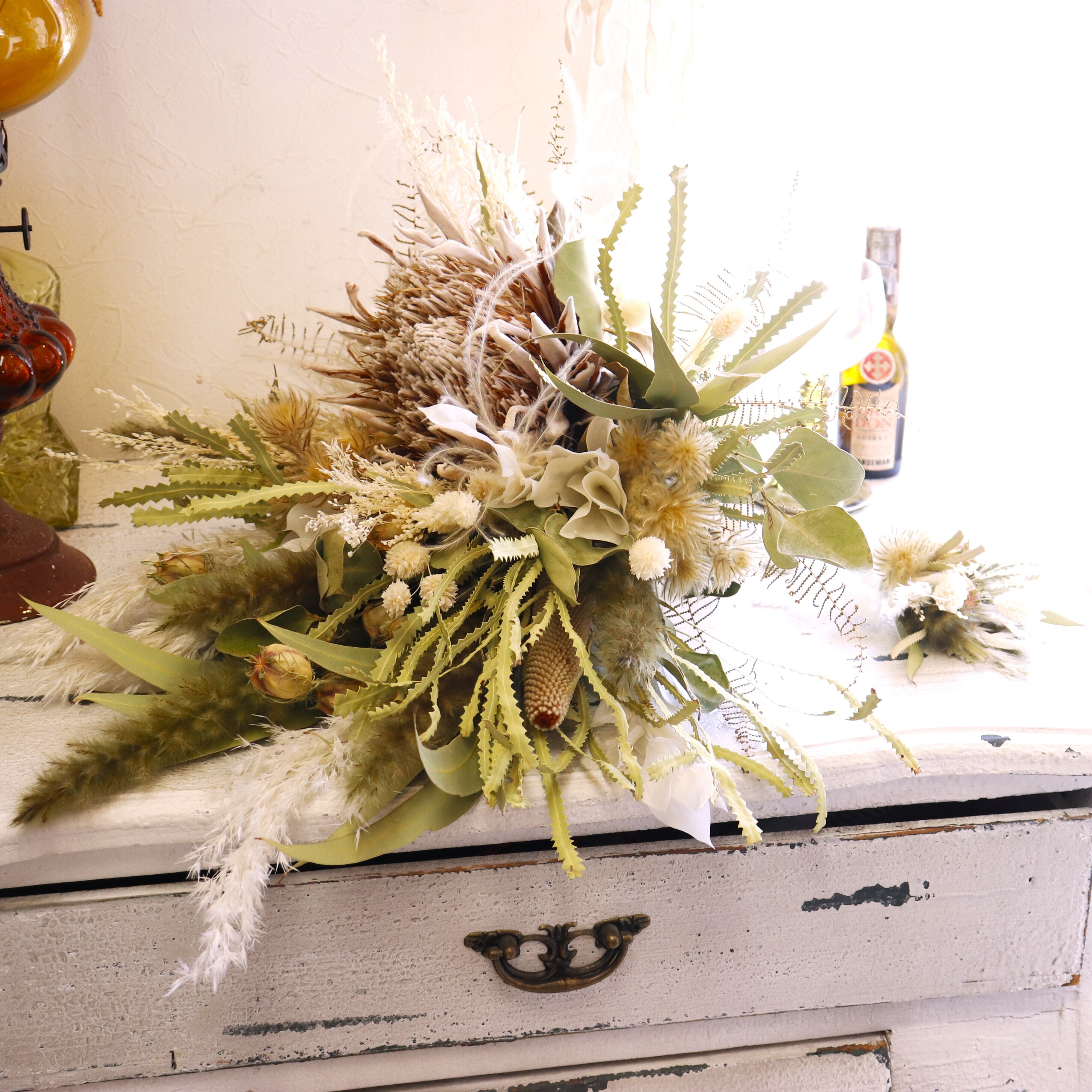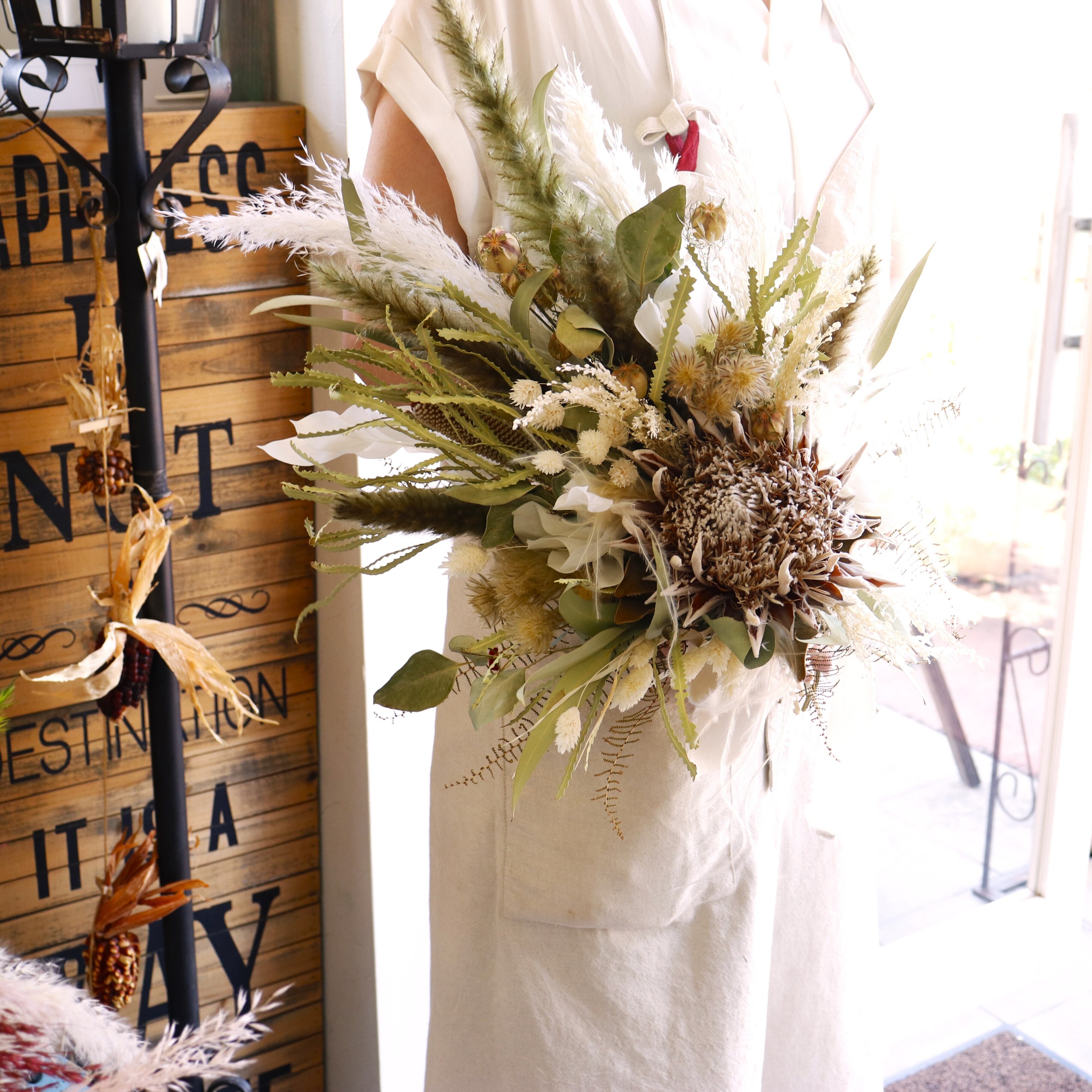 【ウェディングブーケ】キングプロテア ホワイト グリーン