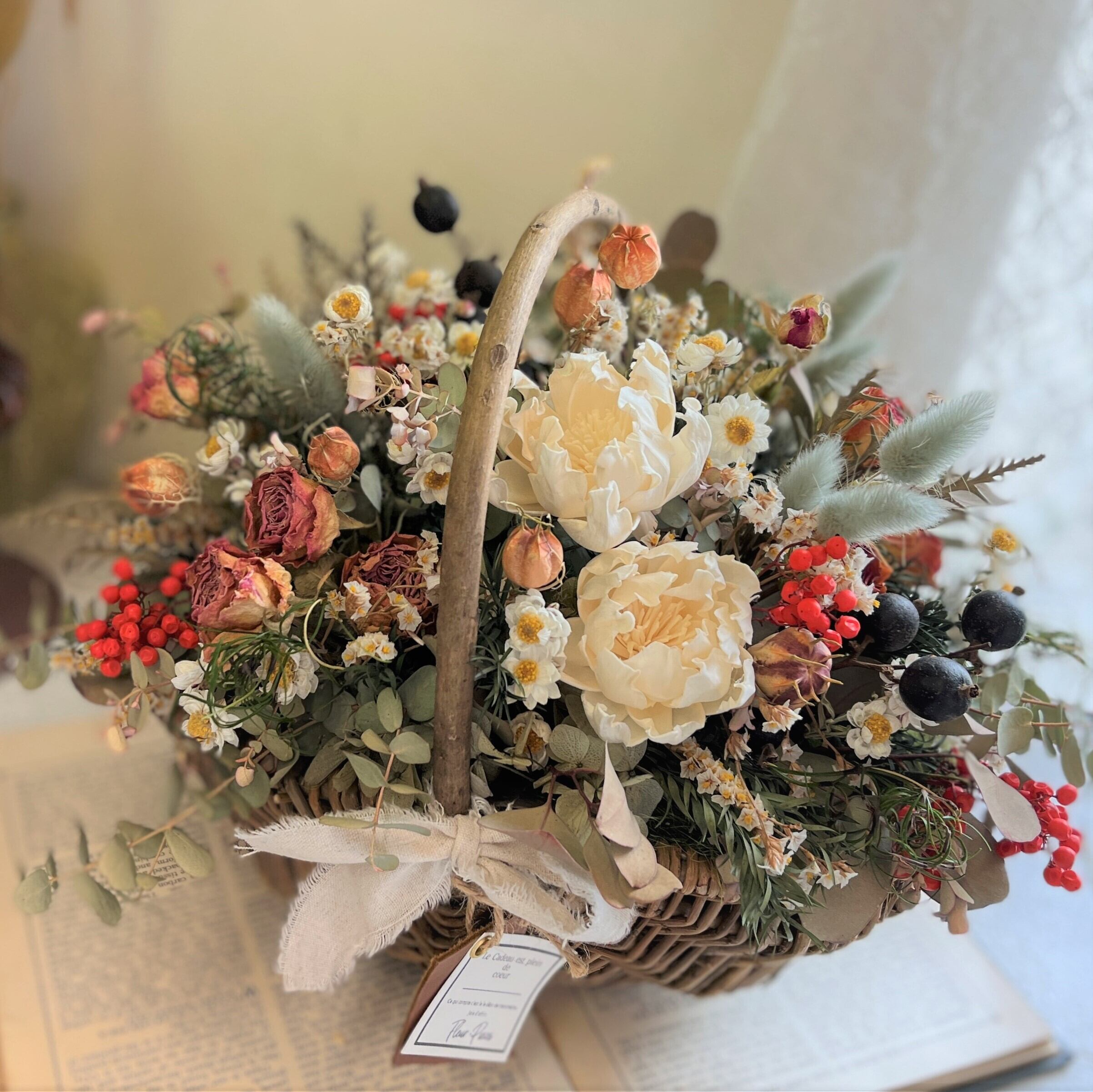 【ドライフラワー】アレンジメント バスケット red