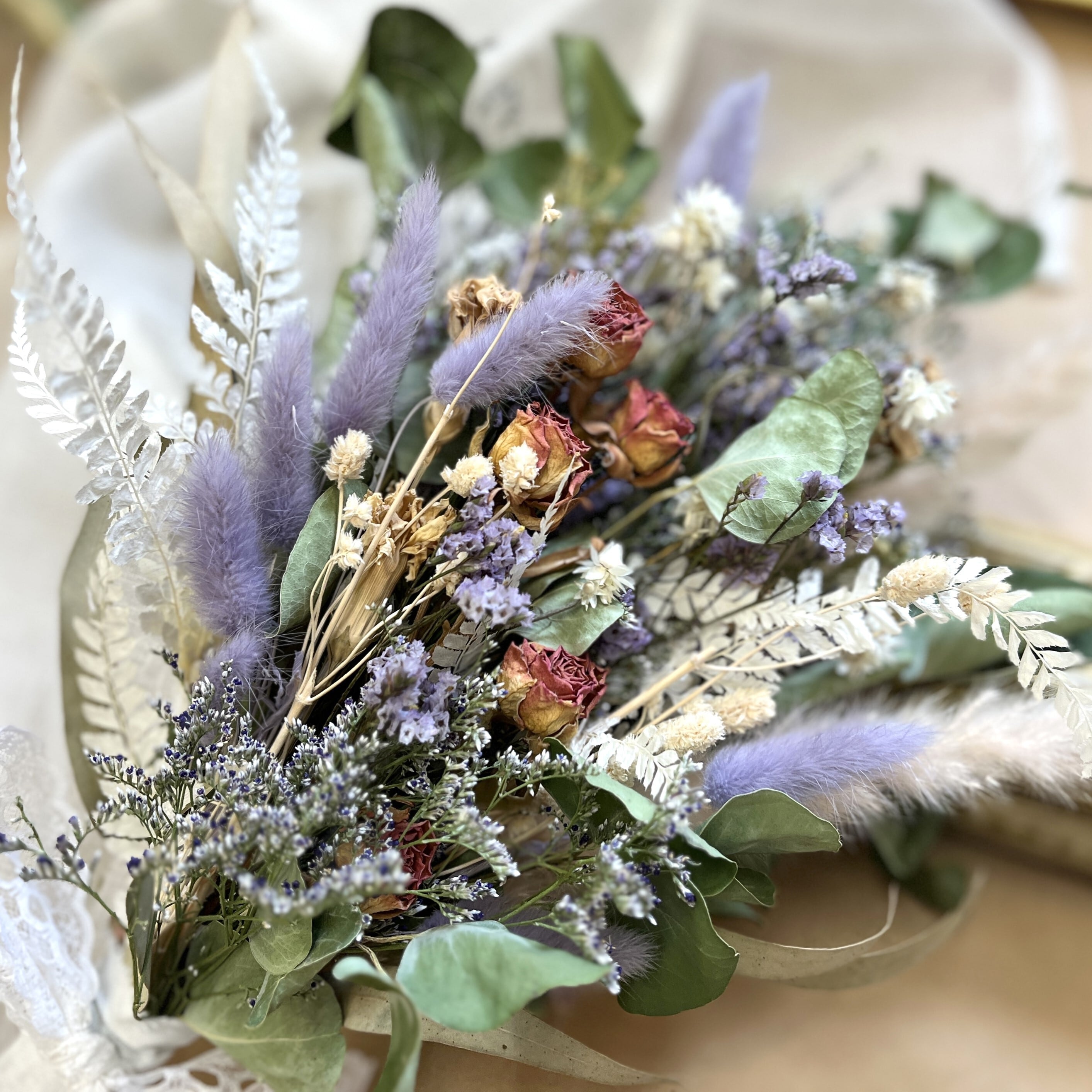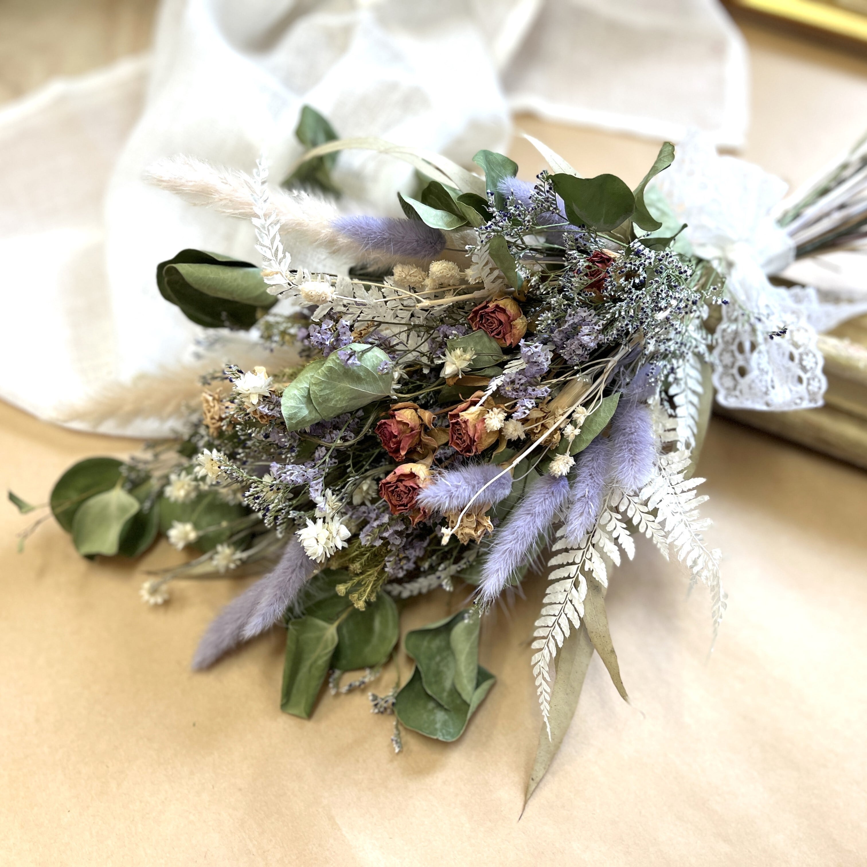 プレゼントの花束として、スワッグとして壁に掛けても飾っていただけます。